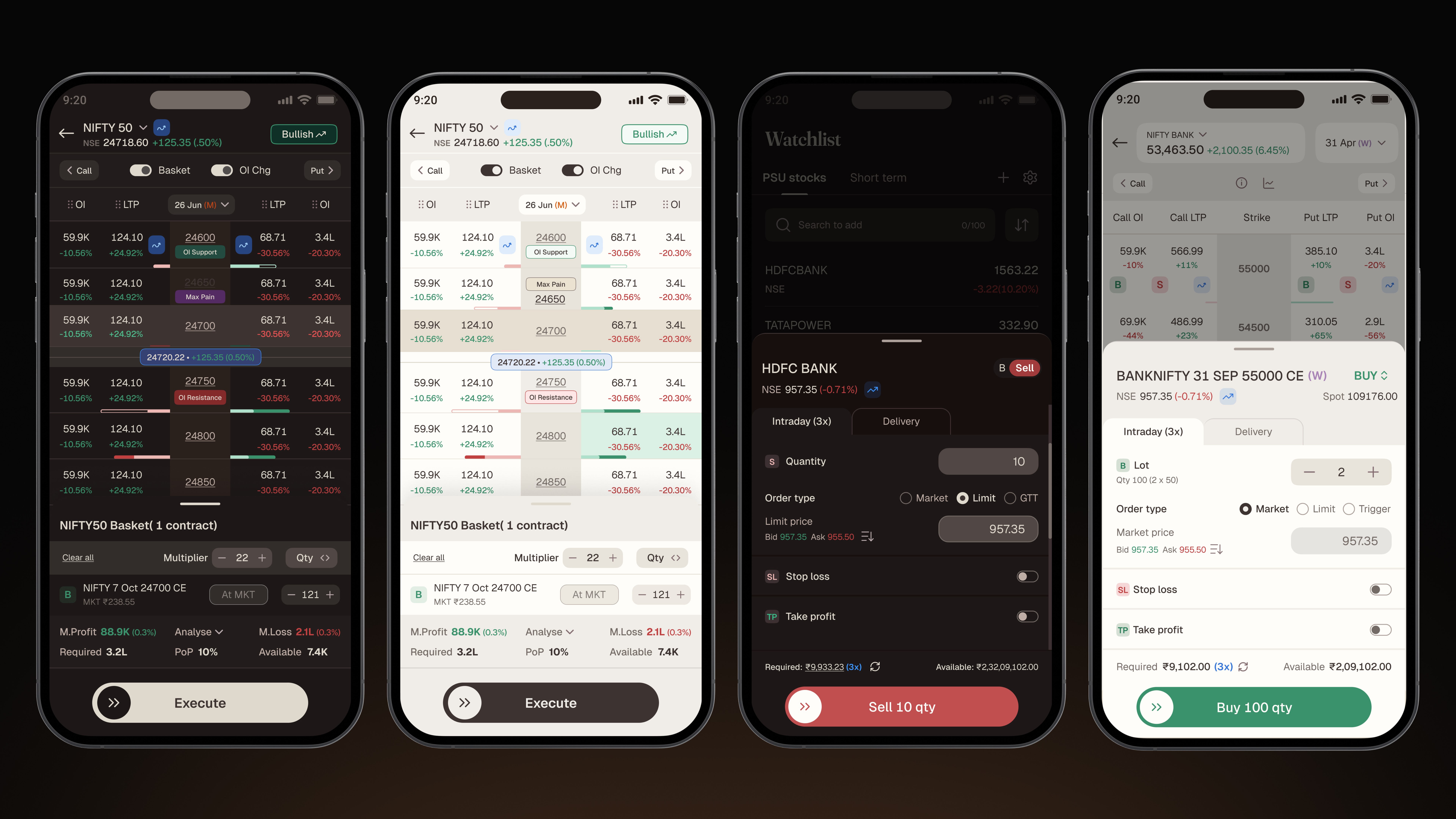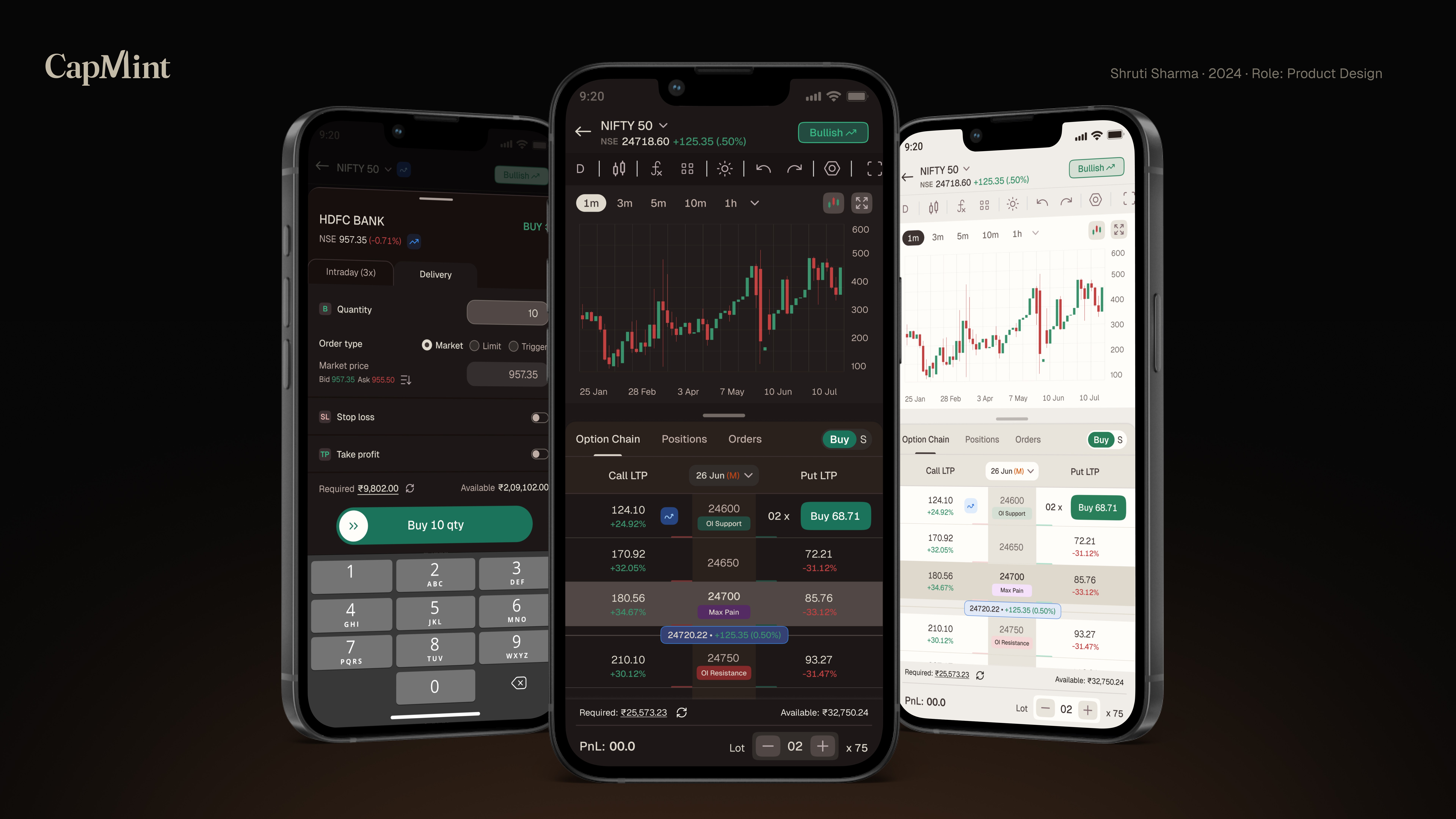 Improved trade execution speed and retention for pro F&O traders by redesigning the Option Chain with live updates, implied volatility 44% faster execution, 23% higher weekly retention, and 20% more trades per session.