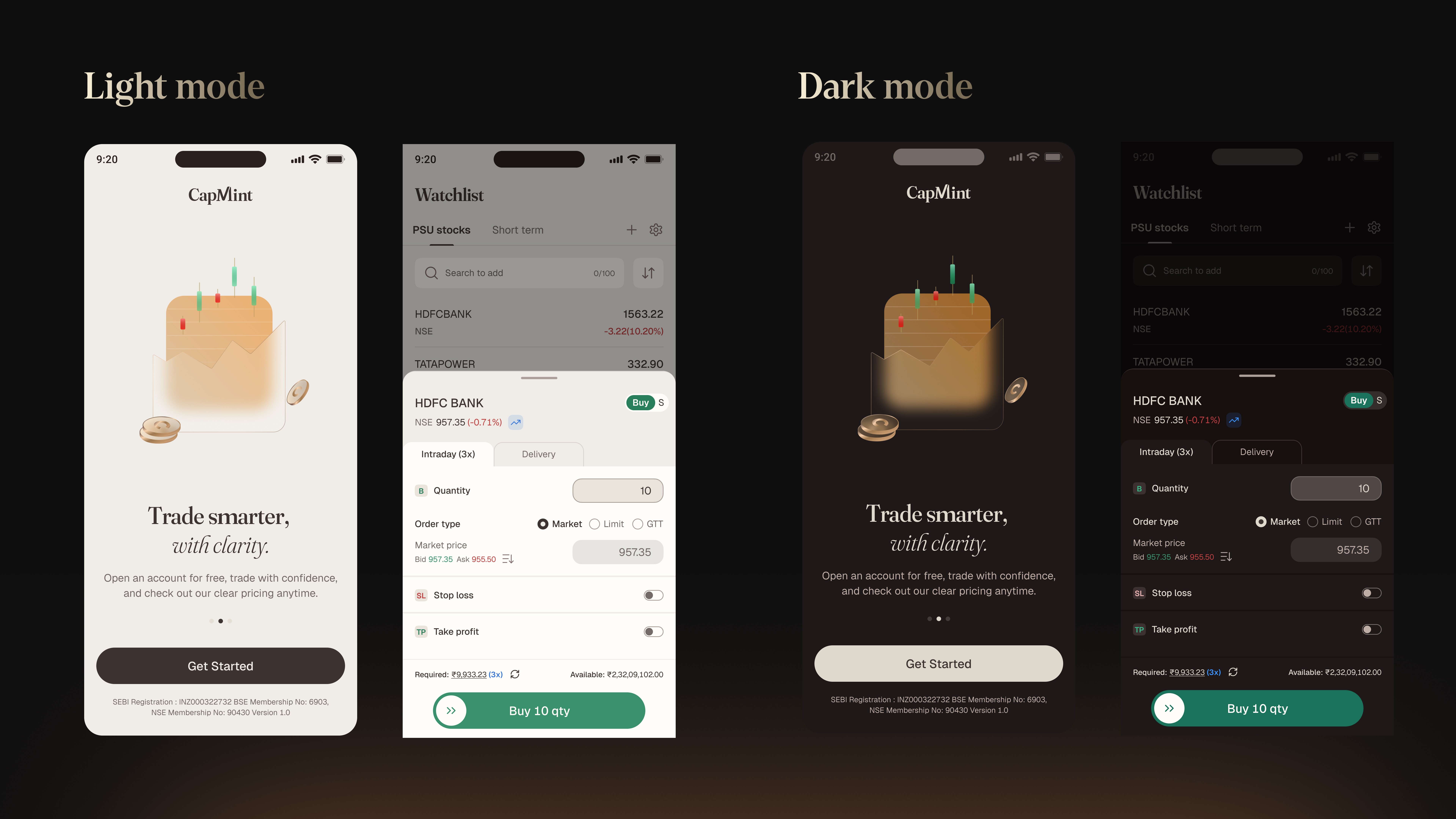 Designed for both equity investing and Fn0 trading, Capmint combines powerful tools with a calm, premium interface that reduces friction and builds confidence in high-stakes markets.