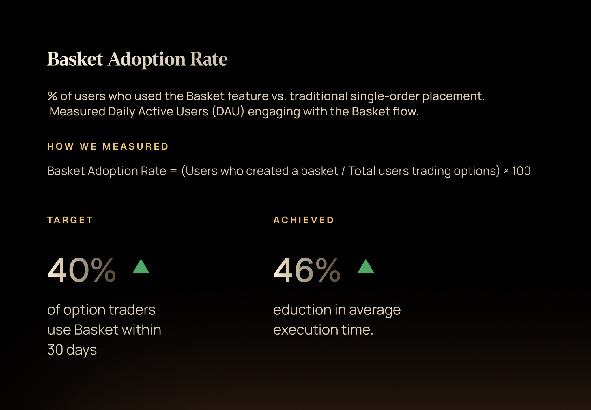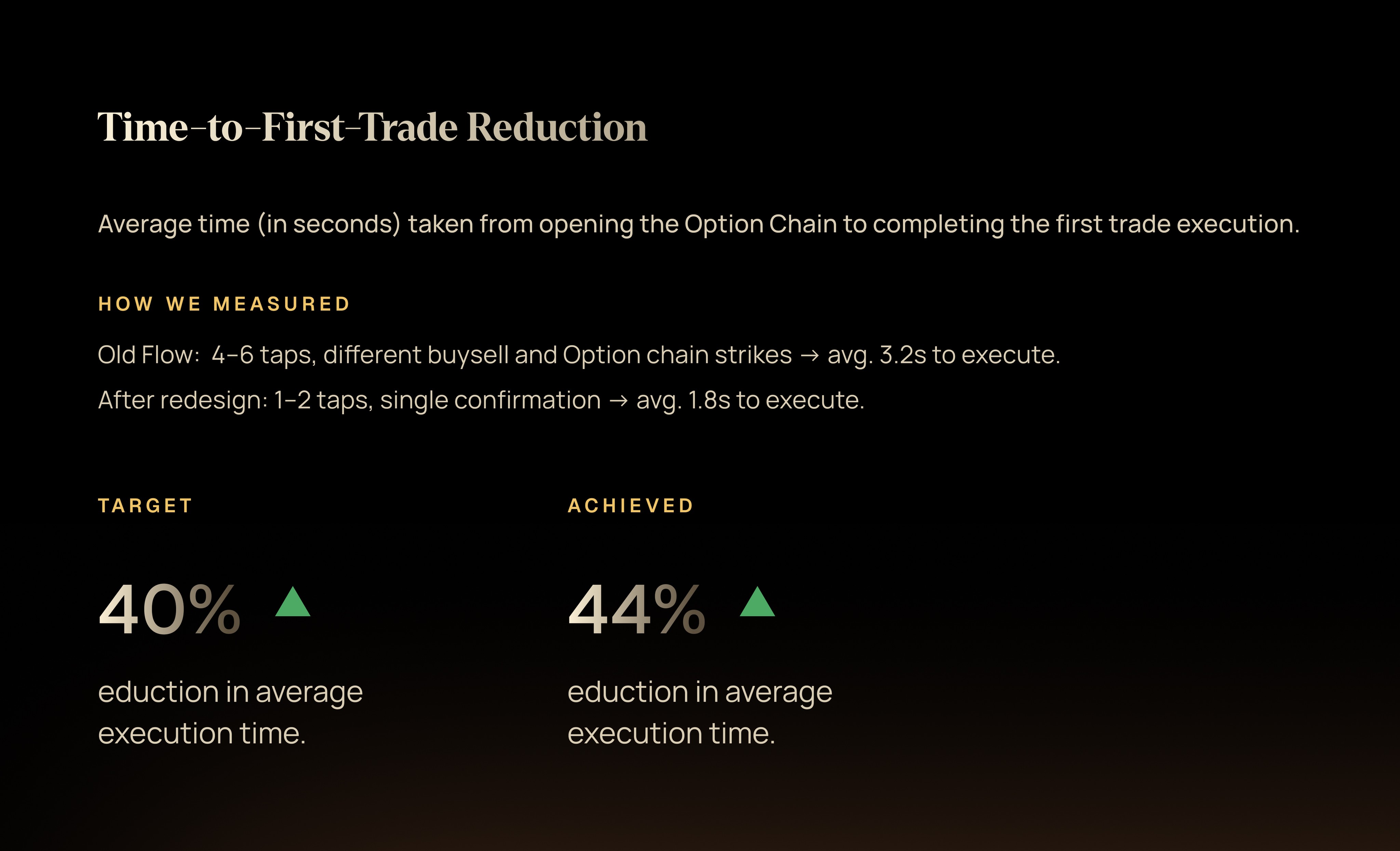 This case study brings together those challenges and their outcomes a redesigned Option Chain, Basket Orders, and Turbo Mode that together created a unified trading experience and cut execution friction by more than 20%.