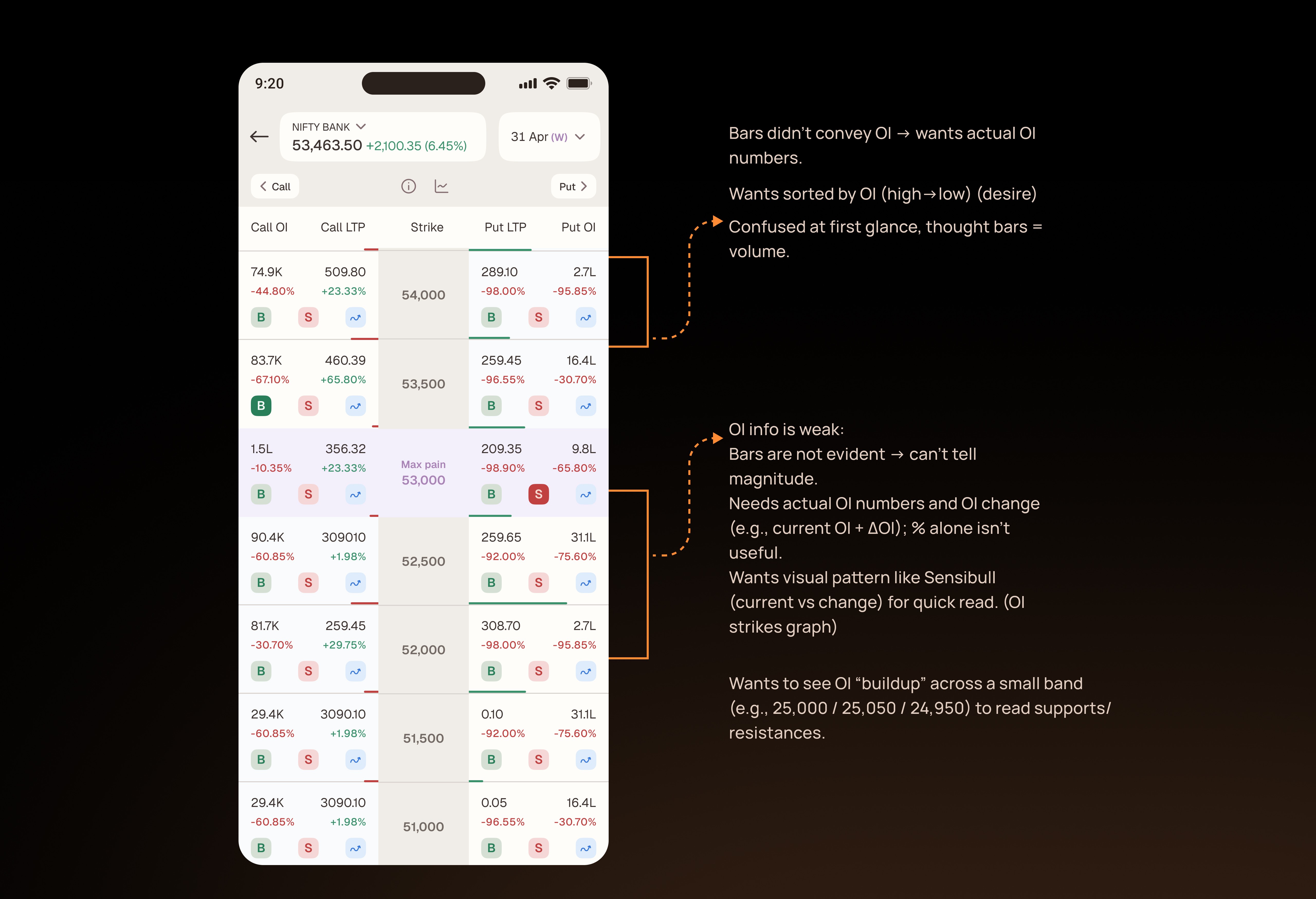 At Capmint, our goal was to understand how real traders think their mental shortcuts, emotional triggers, and behaviors while navigating the Option Chain and trading sessions.