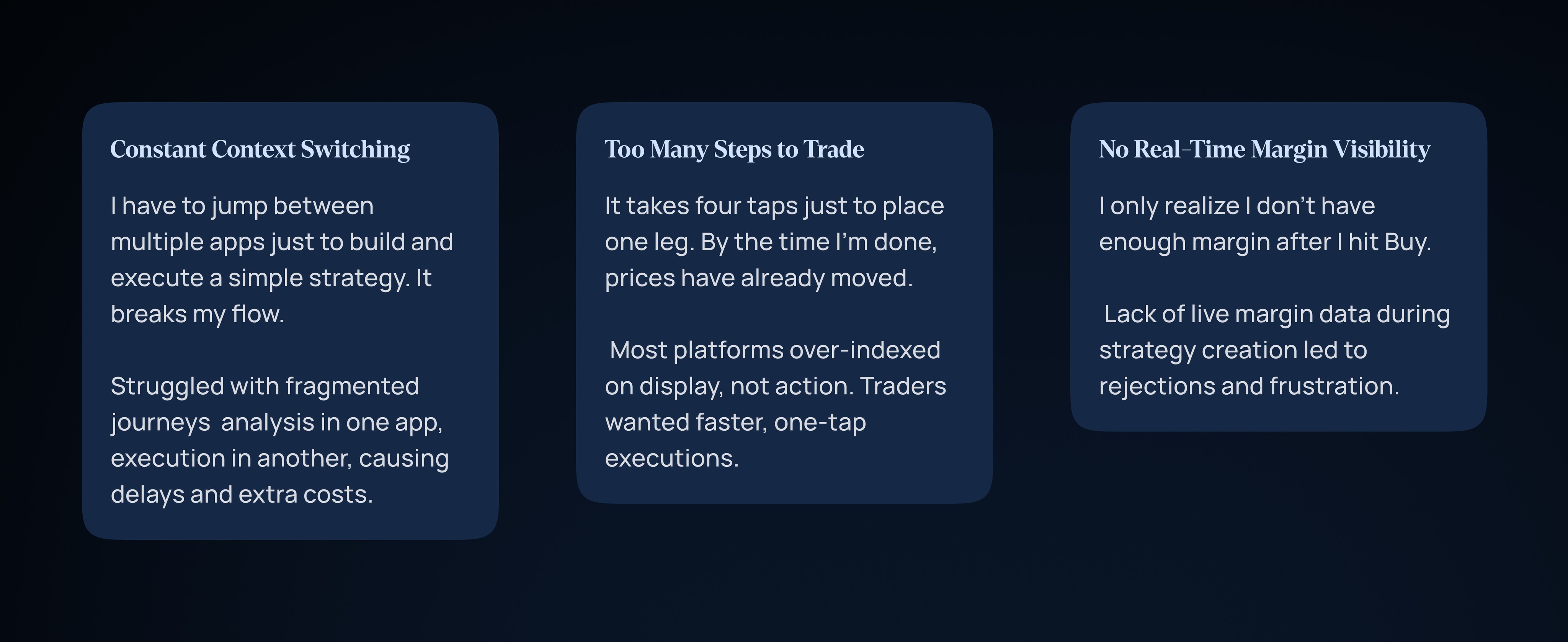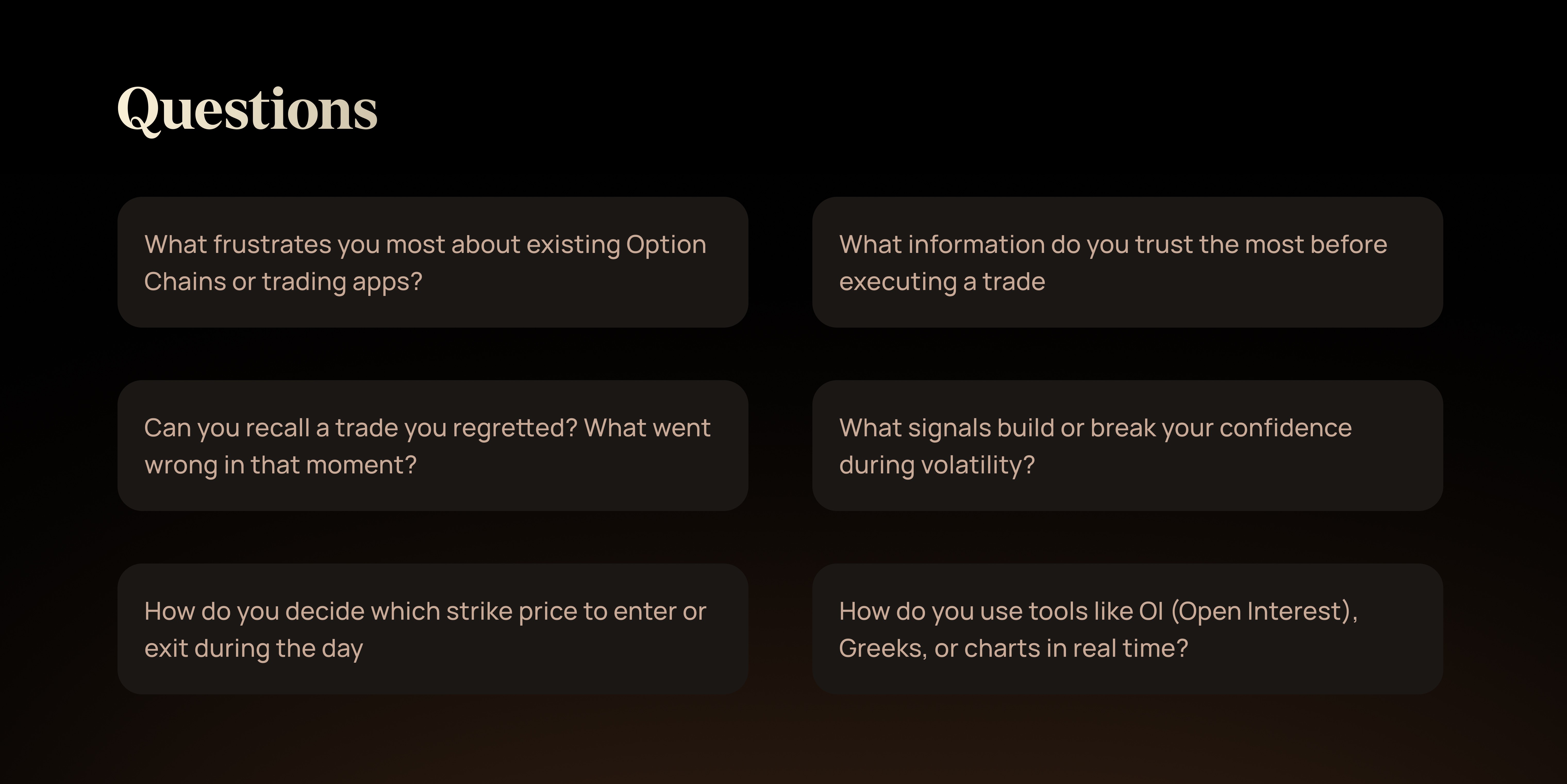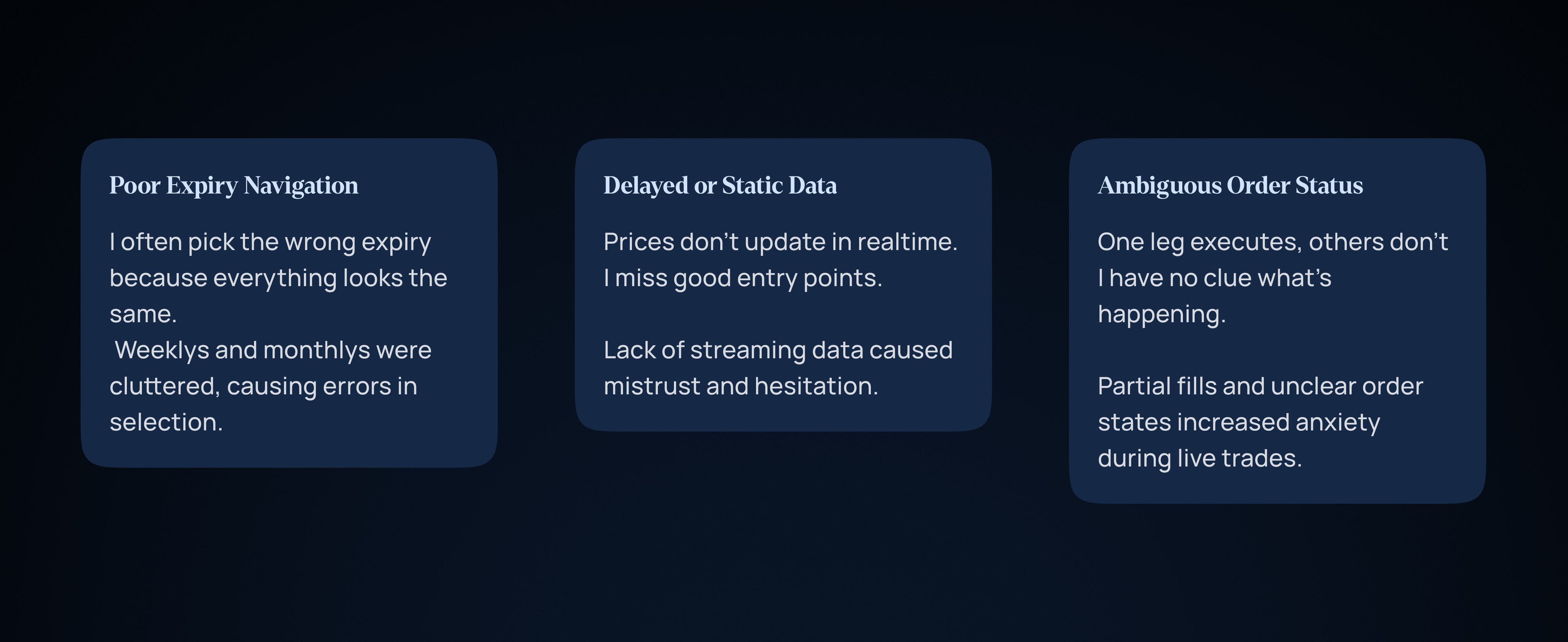 At Capmint, our goal was to understand how real traders think their mental shortcuts, emotional triggers, and behaviors while navigating the Option Chain and trading sessions.